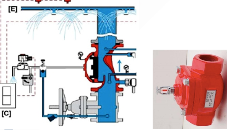 自動(dòng)噴水滅火系統(tǒng)應(yīng)根據(jù)不同的系統(tǒng)形式設(shè)置相應(yīng)的報(bào)警閥組。保護(hù)室內(nèi)鋼屋架等建筑構(gòu)件的閉式系統(tǒng),應(yīng)設(shè)置獨(dú)立的報(bào)警閥組;水幕系統(tǒng)應(yīng)設(shè)置獨(dú)立的報(bào)警閥組或感溫雨淋閥組。