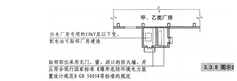 4、變、配電站不應設置在甲、乙類廠房內(nèi)或貼鄰建造,且不應設置在具有爆炸性氣體、粉塵環(huán)境危險區(qū)域內(nèi)。供甲、乙類廠房專用的10KV及以下的變、配電站,當采用無門、窗、洞口的防火墻分割時,可一面貼鄰。