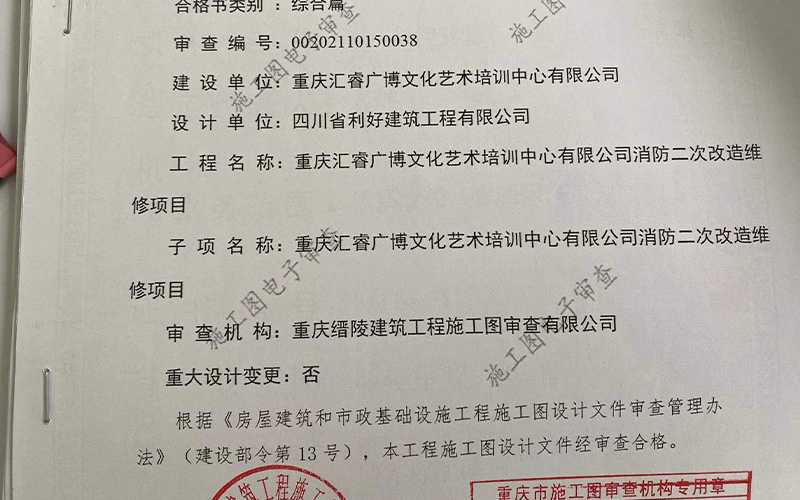 重慶匯睿廣博(皇加教育)文化藝術(shù)消防手續(xù)辦理案例-鼎堂消防