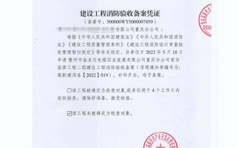 惠州市金龍羽電纜實業(yè)發(fā)展重慶研發(fā)中心有限公司消防備案案例-鼎堂消防