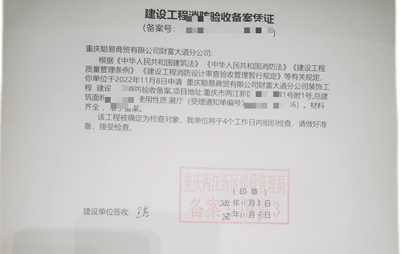 重慶聰易商貿(mào)有限公司消防備案憑證