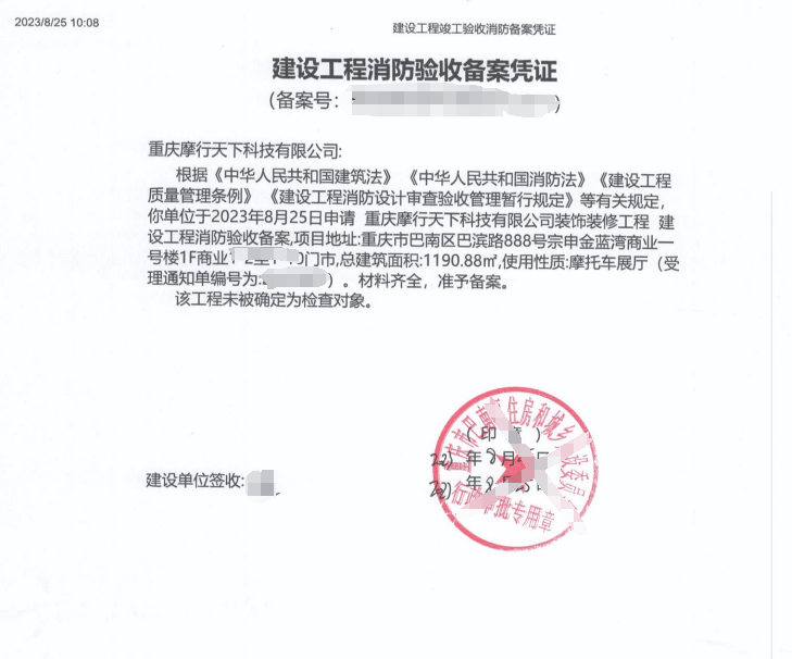 重慶摩行天下科技有限公司消防備案案例-鼎堂消防